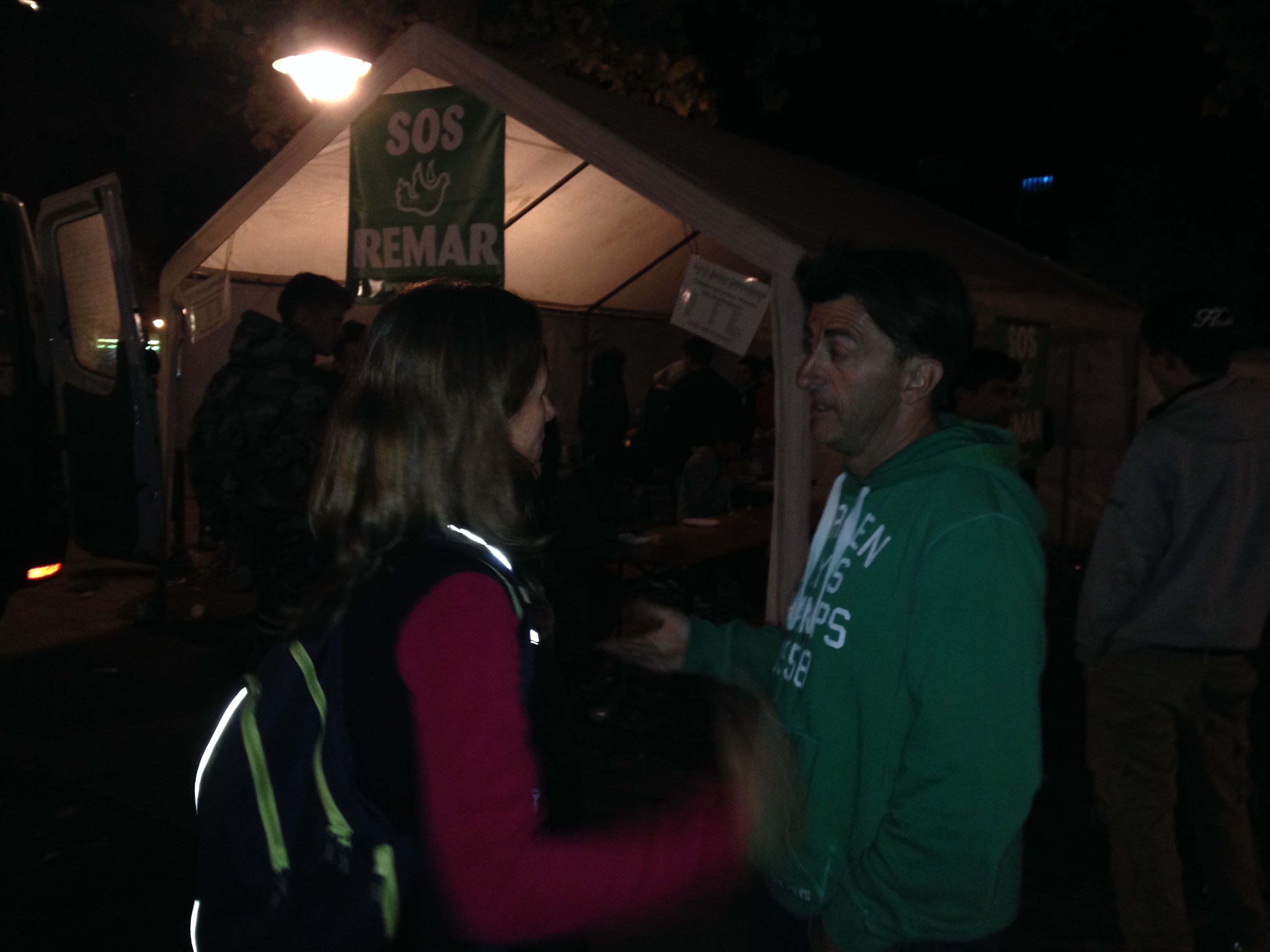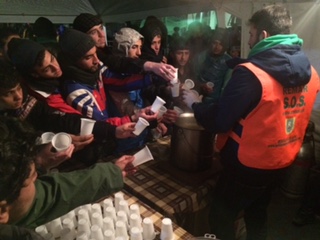 Decimos permanentemente porque día y noche hay como mínimo dos voluntarios de Remar en esta carpa. Por lo tanto, durante las 24 horas del día tiene que haber alguien que atienda a los que tienen sed o hambre, al que necesita una manta, al que necesita algo de ropa, al que necesita que le aclaren determinados trámites, etc. o simplemente, alguien que dé cariño a la gente que entra en la carpa. Porque los voluntarios de Remar dedican tiempo a hablar con los que pasan por su carpa, para conocerles, conocer la situación particular de cada uno, darles conversación, cariño, cuidados, consuelo, risas, abrazos… tratando de hacer que se sientan queridos. Están en contacto directo con los refugiados y en palabras de Juan Carlos, los voluntarios de Remar buscan que ‘con el afecto no sólo calienten el cuerpo sino también el corazón’ . Estos voluntarios viven para darse a los demás, trabajan gratuitamente por amor a Dios y al prójimo. Son personas voluntarias que no cobran un euro por estar ahí por lo que un euro que se les confíe es un euro que llega directamente a las personas que lo necesitan, a los refugiados.