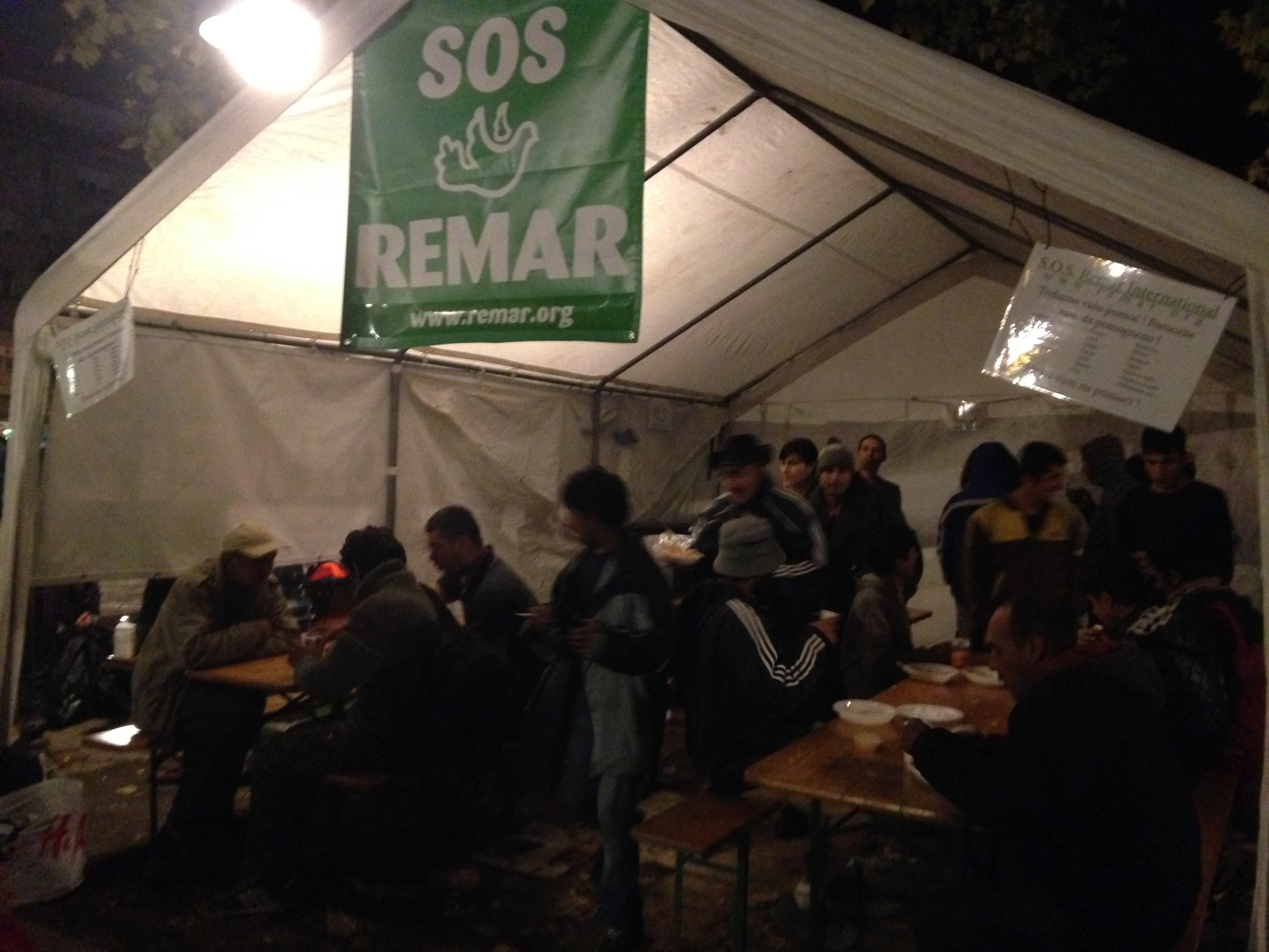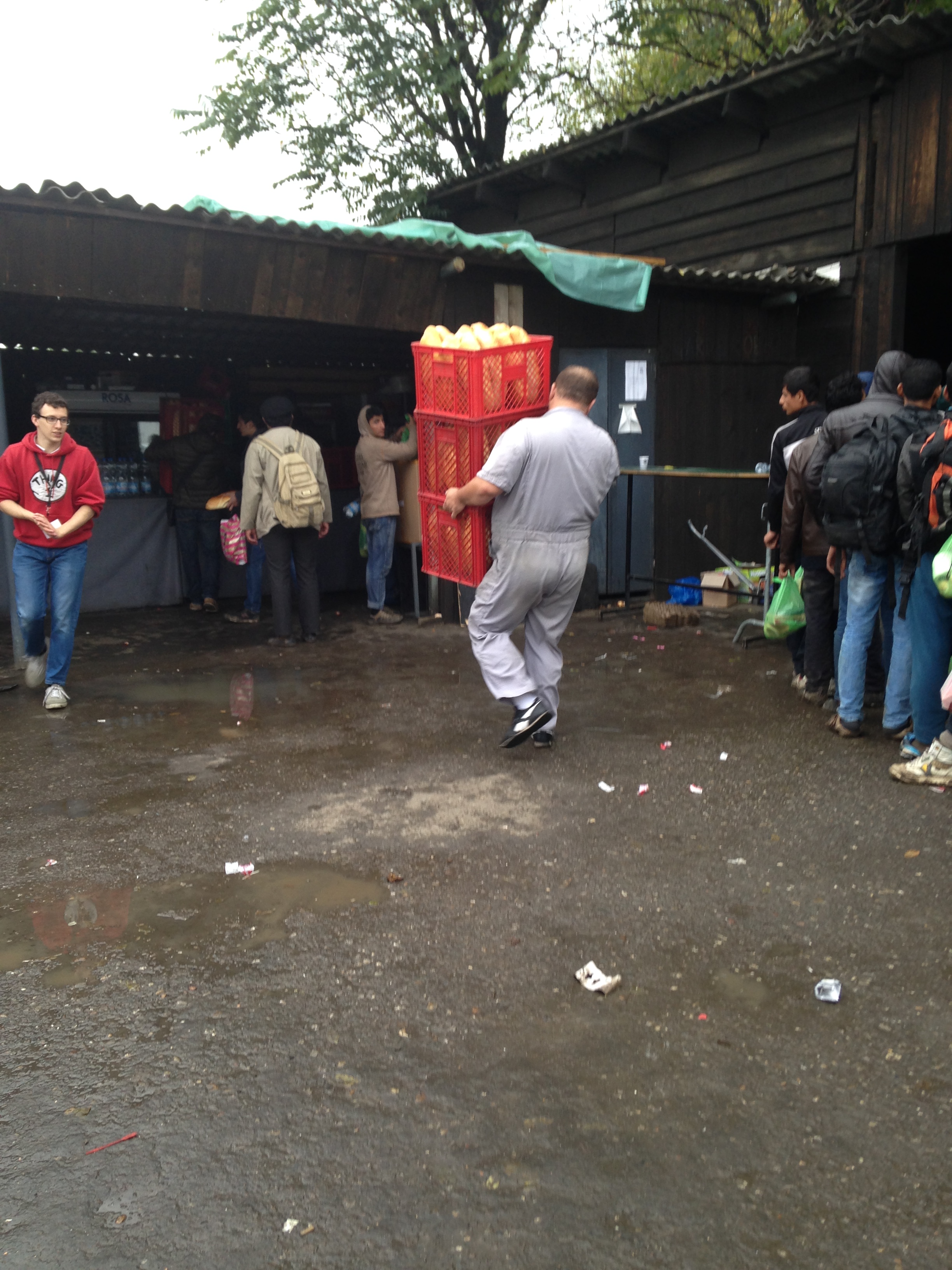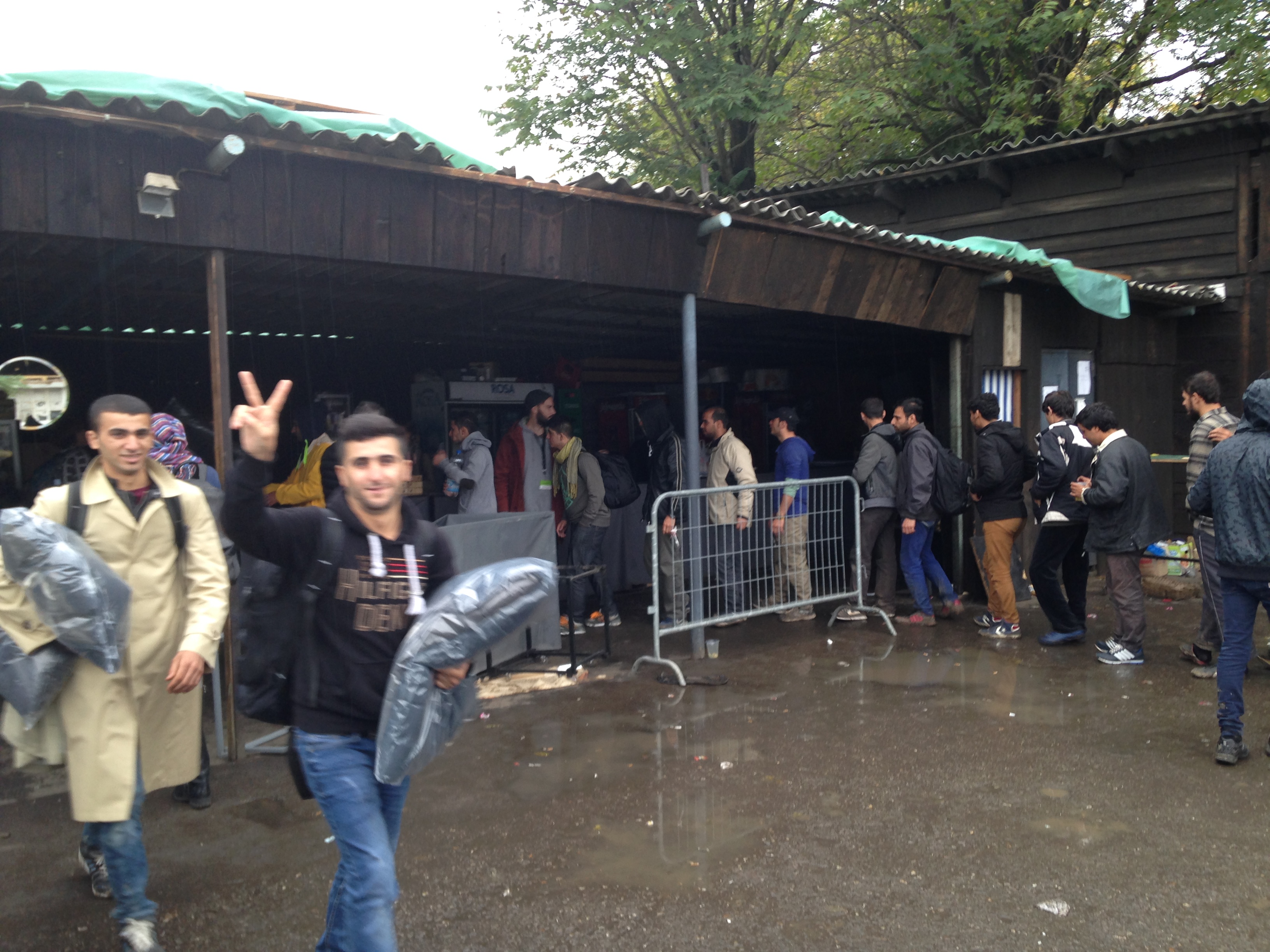 - Después de la caminata desde la frontera entre Macedonia y Serbia, a los refugiados les esperaba una cola de a veces hasta cinco horas para entrar en el campamento, luego otra cola en el interior de la carpa de Remar y Mensajeros de la Paz para un primer registro, seguida de otra cola para hacer la documentación. Todo esto lo hacían tanto de día como de noche, cargando con niños en brazos, mochilas, etc. y lo más abrigados que podían, ya que gran parte del tiempo lo pasaban al aire libre a bajas temperaturas. Por lo tanto cuando estaban en el interior de la carpa estaban demasiado abrigados, pero no tenían manos ni espacio para desabrigar a los bebés ni a ellos mismos, con lo cual algunos se morían del calor (sobre todo los que llevaban a niños en brazos) y muchos lloraban o de desplomaban. Entre esta gente también había varias mujeres embarazadas, y en las colas no había privilegios.