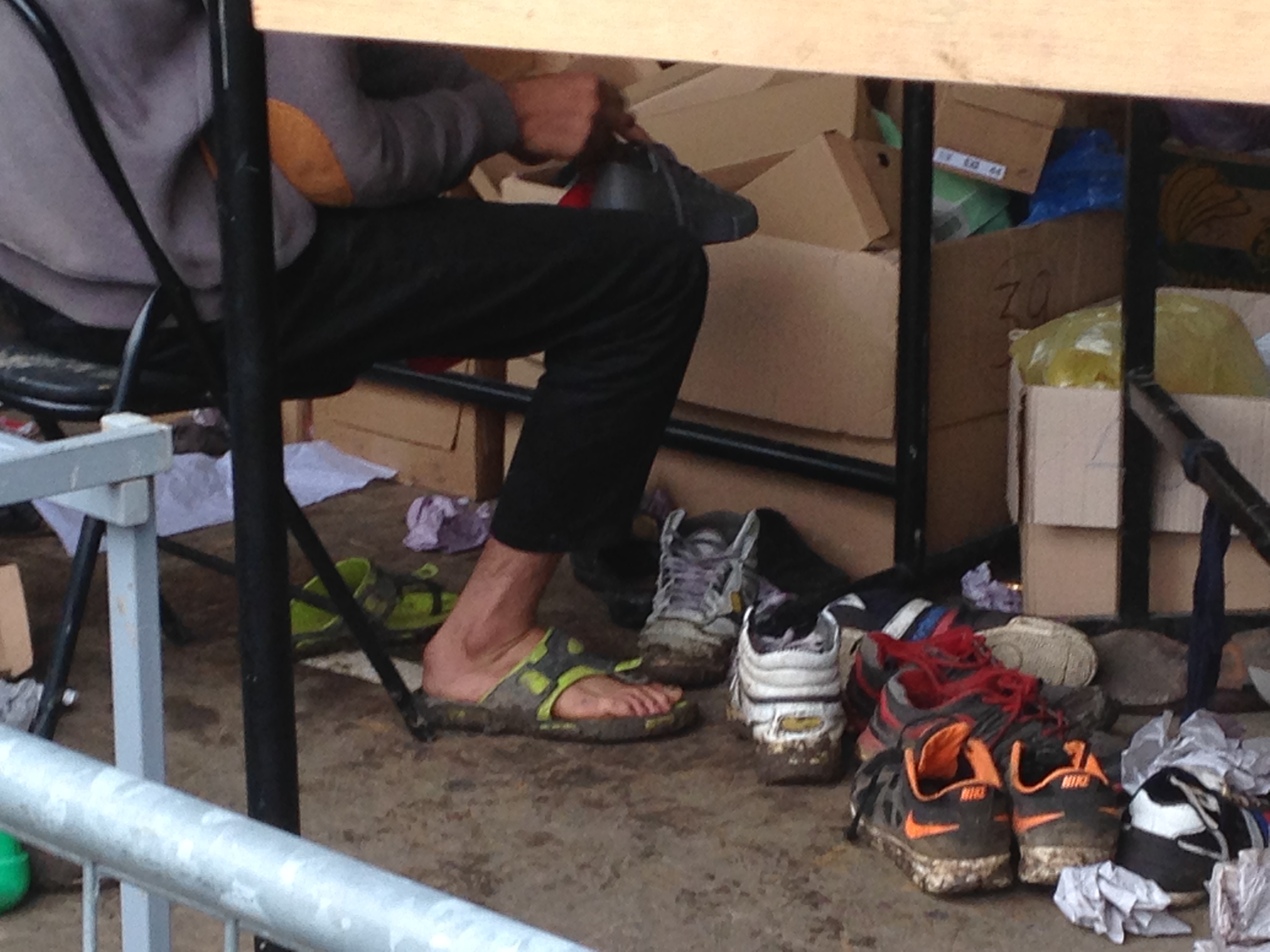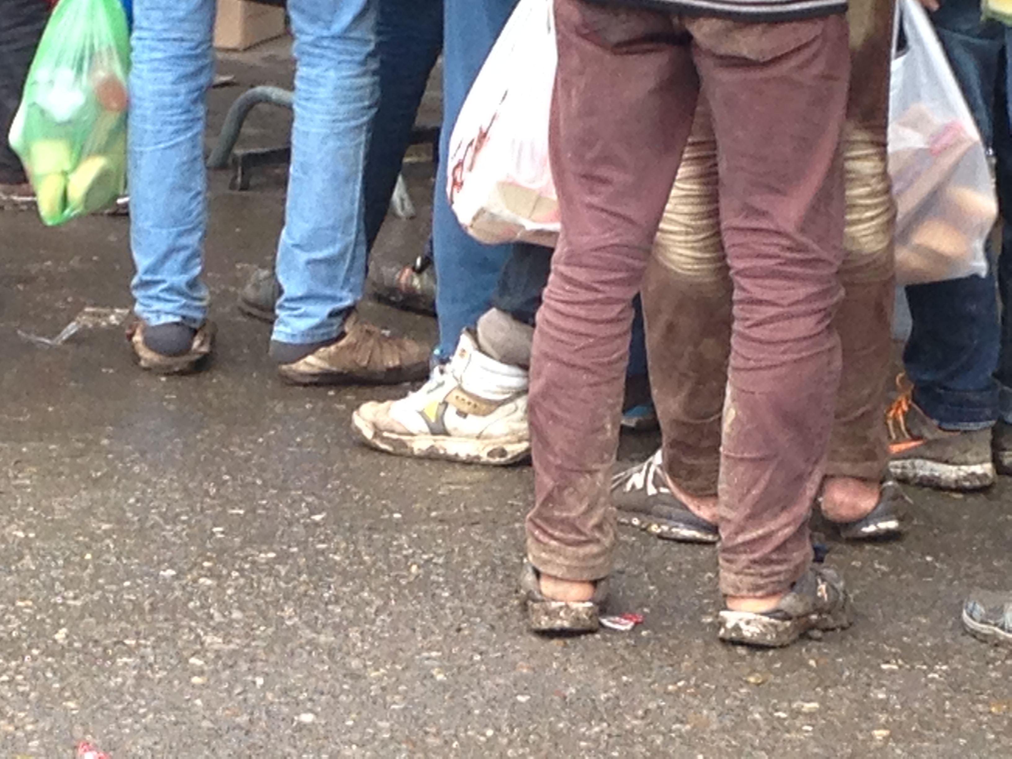 - Recientemente han construido unos anexos con duchas y aseos. Los que llevaban estaban contentos de poder asearse, hubo uno que me dijo que no había podido ducharse desde hacía seis días. Tiene que ser muy duro viajar sin poder asearte ni cambiarte de ropa. Muchos nos pedían ropa interior, calcetines, etc. pero no había de su talla o ya se habían agotado. Igual que los zapatos: algunos los tenían tan mal que cogían los que habían dejado refugiados que ya habían pasado por ahí, aunque fueran de una talla inferior o superior a la suya y estuvieran llenos de barro.