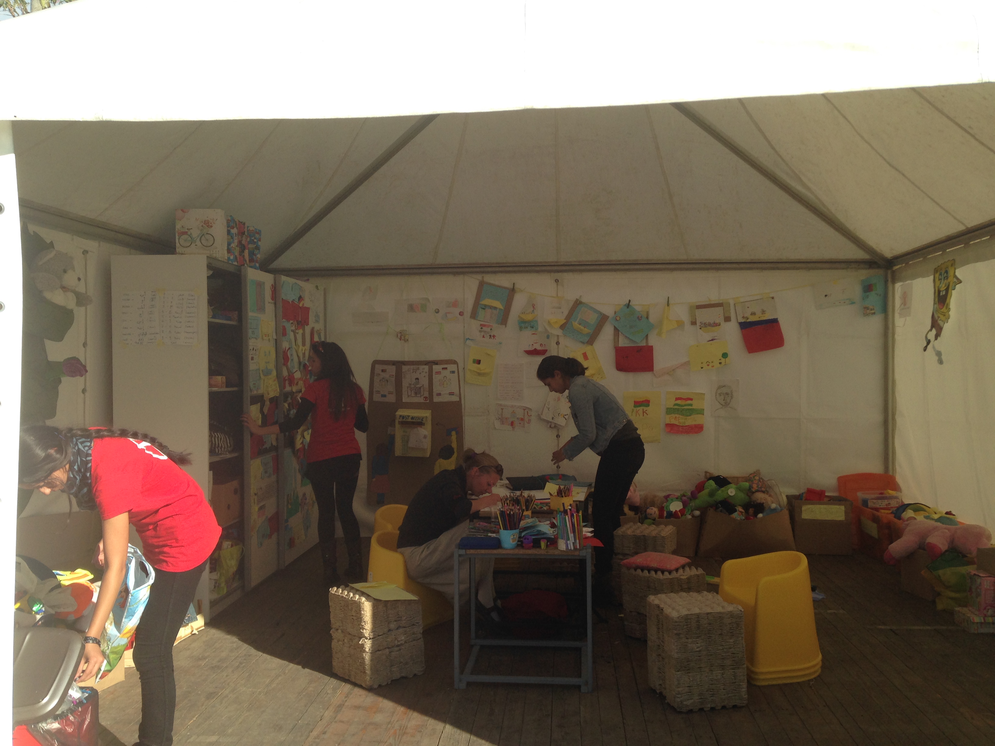 - Conocimos a una niña de unos 8 años que viaja con sus hermanos y su madre. Las acompañan además otras dos niñas, cuyos padres han fallecido en la guerra. La madre nos pareció increíblemente fuerte, pues viajaba ella sola con 6 niños. La mayor no debía tener más de 9 ó 10 años. Nos preguntábamos cómo habría hecho la travesía en Zodiac hasta Lesbos con todos esos niños, pues es una de las partes más peligrosas de su ruta, ya que muchos se caen al mar y se ahogan. Estuvimos pintando con ellos. Al principio pensábamos que no sabían coger un lápiz y les tuvimos que ayudar y luego resultó que sí, que lo que les pasaba es que no tenían fuerzas para cogerlo.